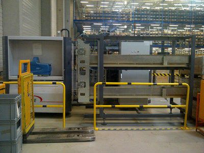- Sensorik, wie Lichtschranken und Linienscanner, zur Plausibilitätsprüfung der Label und der Begleitpapiere
