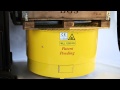 Die Paletten-Drehstation arbeitet unabhängig von externen Energiequellen, d.h., ohne Strom-, Pneumatik- oder sonstige Anschlüsse. Das Eigengewicht der abgestellten Palette genügt, um die Paletten-Drehstation mit ausreichend Energie für die Drehbewegung zu versorgen. Die bei diesem Vorgang gespeicherte Energie bringt die Plattform anschließend zurück in die Ausgangsposition.